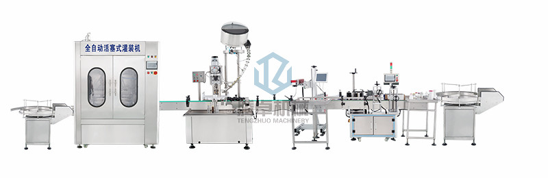 人工把瓶放到送瓶轉(zhuǎn)盤上-自動灌裝-自動理蓋下蓋-自動鎖蓋-自動打碼-自動貼標(biāo)-人工收瓶