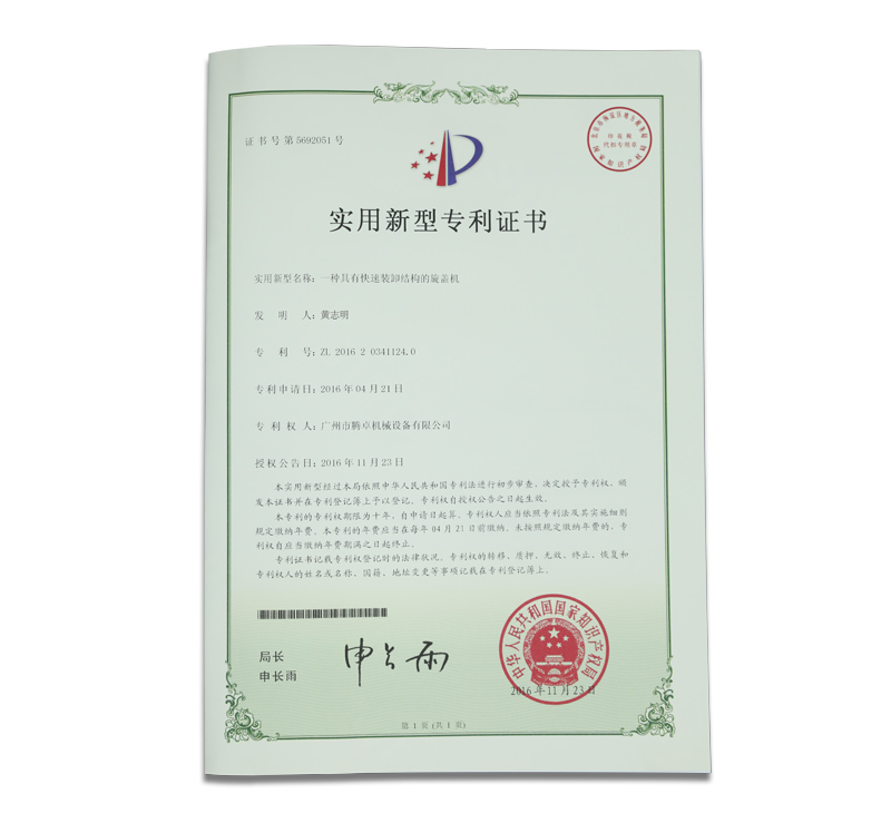 騰卓機械專利生產(chǎn)證書,專業(yè)制造包裝設備的生產(chǎn)廠家,全自動及半自動的洗瓶機,烘干機,灌裝機,旋蓋機,貼標機,套標機,打碼機等非標定制自動化包裝生產(chǎn)線