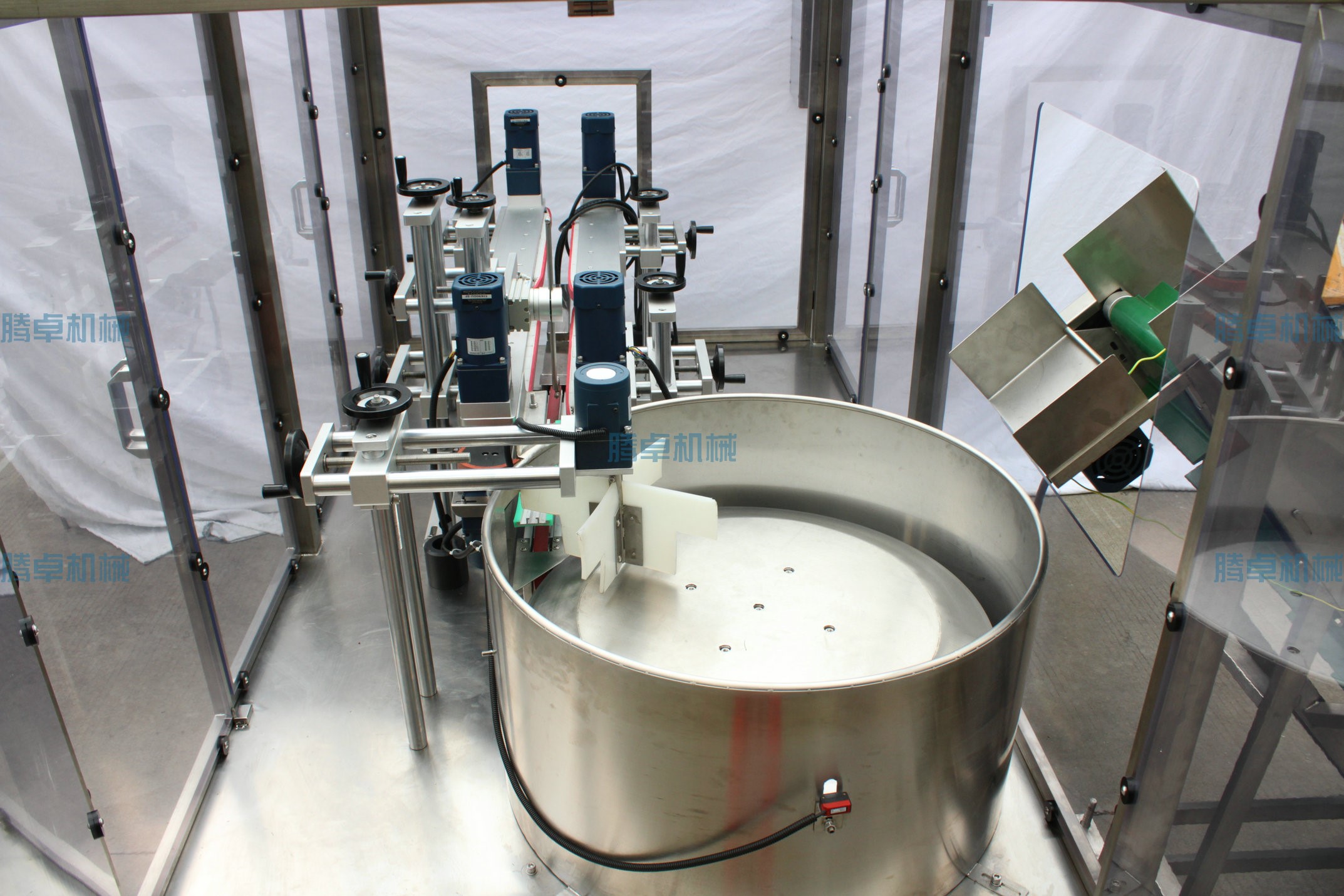 本機(jī)采用了兩級(jí)對(duì)口的機(jī)構(gòu),確保針管插入率100%,無論藥具歪斜程度較大或瓶口較小,都無須擔(dān)心。本機(jī)灌裝速度連續(xù)可調(diào)。