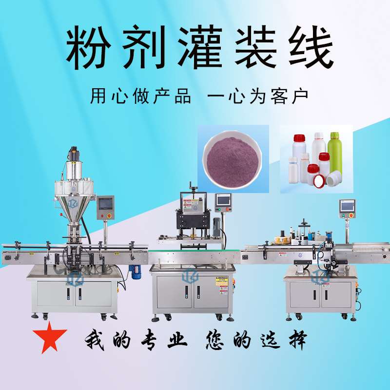 粉劑類灌裝旋蓋貼標(biāo)生產(chǎn)線說明: