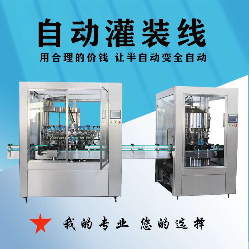 此生產(chǎn)線主要應(yīng)用于飲料酒類行業(yè)例如:各種飲料,白酒,黃酒,葡萄酒,果酒等水劑類產(chǎn)品,設(shè)備采用先進(jìn)的光、電、氣一體化自動控制系統(tǒng),實(shí)現(xiàn)進(jìn)瓶,定位,灌裝,出瓶自動化生產(chǎn)。